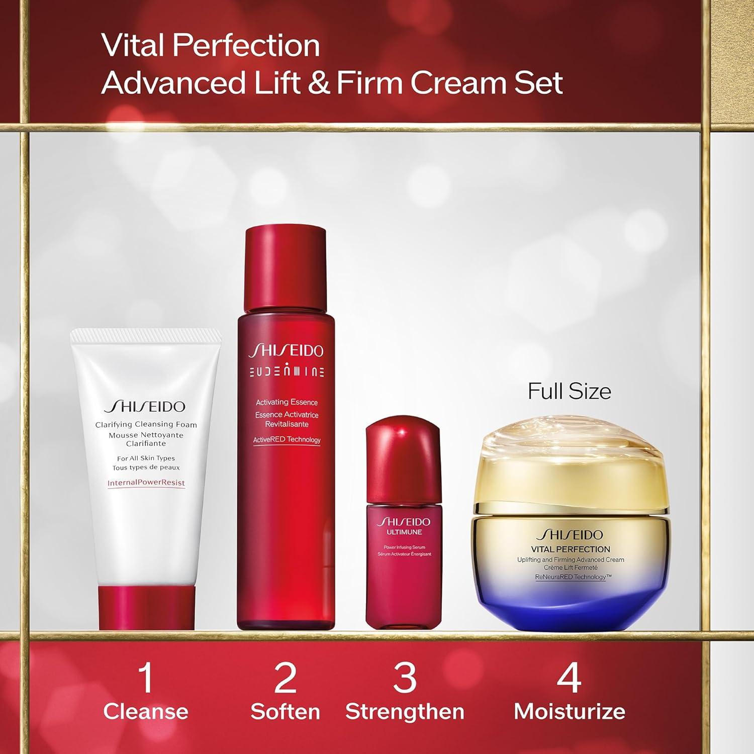 Shiseido Advanced Lift & Firm Cream Set – Clarifying Cleansing Foam (50mL), Eudermine Essence (70mL), Ultimune Power Infusing Serum (10mL) & Vital Perfection Advanced Cream (50mL) – $231 Value